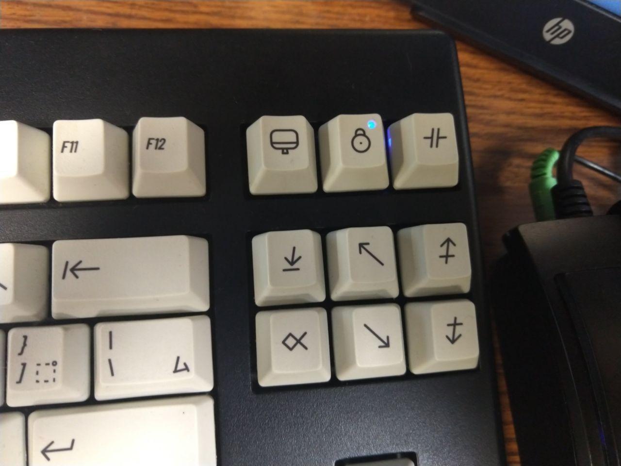 Here is the keyboard I use at work. It's a Topre RealForce 87UB with varied weight keys. I got it used, and I replaced the keycaps since they were worn down, and the stock caps have black text on black keys, which is difficult to read. I drilled holes through the numlock and caps keycap of the set I installed to let the indicator lights through.