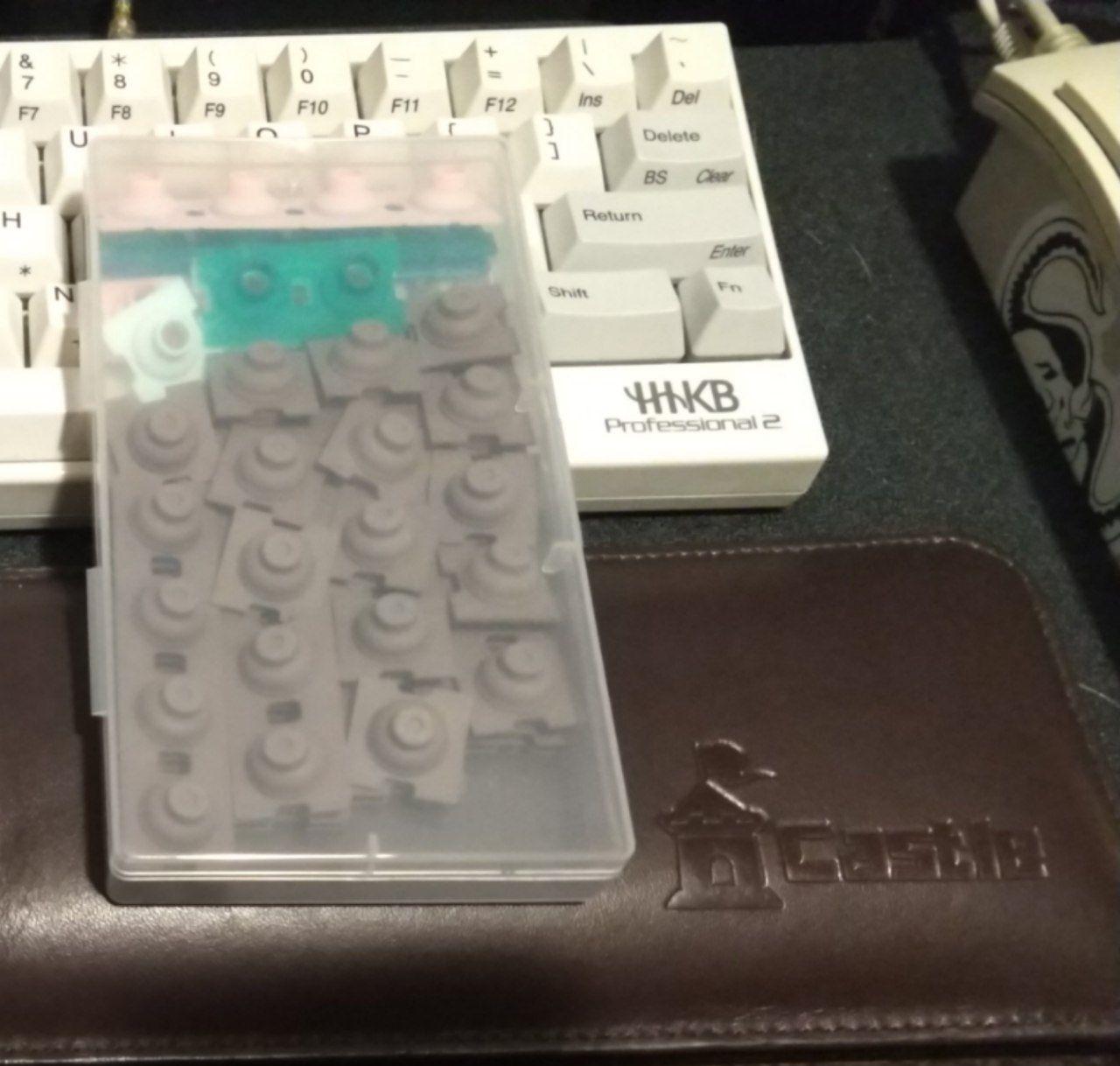 The main keyboard I use at home is a HHKB Pro 2. It came with fixed weight domes, but I recently swapped them for varied weight domes like my keyboard at work has. I used 70g domes on the modifiers, 35g domes for the keys your pinkies press, then 42g domes, then 45g domes for index finger keys.